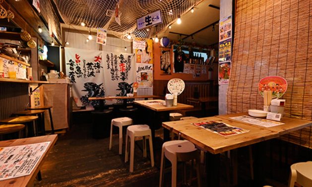 桜木町駅から徒歩2分、野毛の新横丁内という好立地。土日祝日は昼12時から営業しており、昼飲みや早めの宴会にも最適です。やかんピッチャーなどのユニークなドリンクも揃え、少人数から大人数まで様々なシーンでお楽しみいただけます。