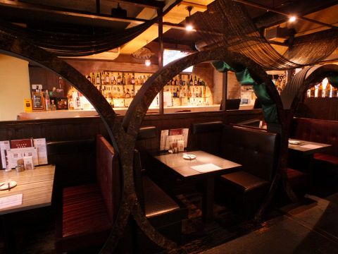 店内奥にすすむと、大人の癒しの隠れ家リゾート空間が広がっております!お席はカウンターやテーブル席、カップルシートなどシーンに合わせてご利用いただけます!