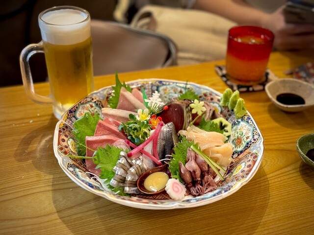 当店では、毎日厳選した新鮮な魚介類を使用した料理をお楽しみいただけます。旬の魚や豪快な刺身盛り合わせ、そして特選の岩牡蠣は必食。お酒との相性も抜群です。