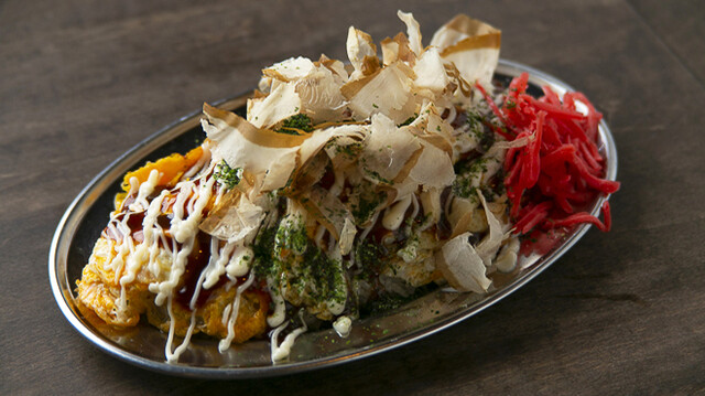 味はもちろん、迫力ある調理風景も楽しめる鉄板料理の数々。「牛すじキャベツ焼き」は、5時間煮込んだとろとろの牛すじが絶品!