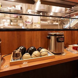 15時~限定!ビュッフェ台に並んでいるごはん、キャベツ、カレー、明太子、出汁茶漬け用の出汁が食べ放題です。食べ方もお好みでアレンジしていただけるのでおすすめ。