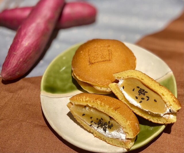 どら焼きはお店で皮を毎日焼いており、クリームやあんこも自家製。小豆、抹茶、チョコレートの甘さ控え目の3種類の味わいを、イートインはもちろんテイクアウトでもお楽しみください。また「和三盆プリン」は、なめらかに仕上がるように低温調理し、和三盆の特徴を活かした優しい甘さが特徴。別添えの黒糖シロップもお好みでどうぞ!