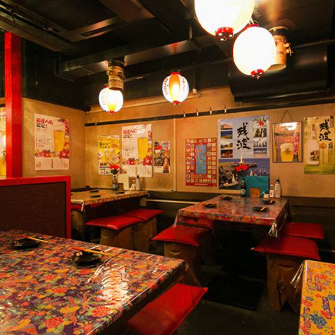 まるで沖縄にいるかのようなトロピカルな雰囲気の店内で、落ち着いた個室空間を提供。お祝い事や宴会、貸切にも対応できる広々とした席で、沖縄の風味とともに特別なひとときをお楽しみください。