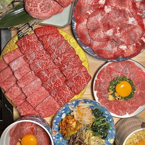 厳選A4近江牛カルビや近江牛大判赤身焼きしゃぶなど、絶品の近江牛を贅沢にお楽しみ頂けます!希少部位は近江牛霜降り等級4番5番のみ。希少の高さに当日鮮度の高い一品を本日の希少部位としてご提供させていただきます。是非ご賞味ください。