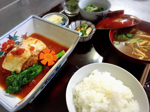 本日のごはんでは、四季の食材や地元で採った旬のお野菜料理をふんだんに使った日替わりの家庭料理!四季を感じながら旬のお野菜を楽しめます!また、当店自慢の「餅入り茶碗蒸し」も付いてきます!是非ご賞味あれ!