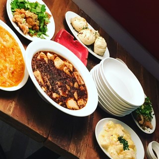 宴会にぴったりの飲み放題付6品おまかせコースは、名物の麻婆豆腐入り!ただ辛いだけでなくオイスターソースの旨味が効いた広東風です!シェフの技術と工夫により、絹豆腐が崩れず形がしっかり残った状態で残っています!