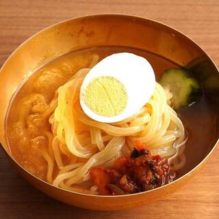 〆にはこれ!半サイズなのでぺロッと頂けます。当店では8種類の具材をじっくり8時間煮込み、あっさりとした中にコクのあるスープ、こだわり抜いたコシのある生麺を使用しております。冷麺以外にもイチオシの一品を数多くご用意させていただいております!