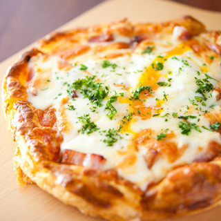 押しも押されもせぬ当店の看板メニューといえば『パイッツァ』。高温で焼き上げることで、サクッと軽い食感を生み出すパイ生地と、とろ~りチーズ、そしてトマトやバジルなど定番の具材。小気味よいその食感と、芳醇な香りに包まれた味わいは10年以上もの間、リピーターを生み出し続ける美味しさです。
