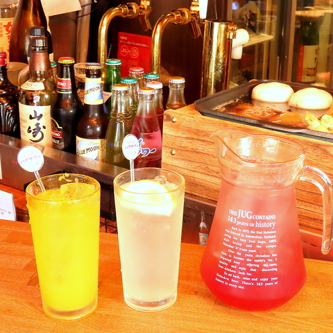 イチオシは昔懐かしの”瓶サワー”。レモンやグレープフルーツなどの定番はもちろん、エスニック料理にピッタリのパクチーレモン、スッキリとした辛みが刺激的なハイ辛などレアなテイストも取り揃えております。カップルやグループでのご利用ならピッチャーサイズ(1.2リットル)でオーダーすればお得に楽しめます!また、クラフトビールや日本酒、ワインも充実。豊富なドリンクメニューから、ぜひお好みを見つけてください。