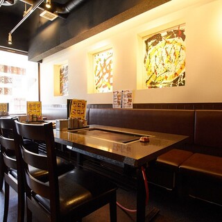 店内は、木を基調としたおしゃれな空間で居心地抜群◎広々としたテーブル席はご家族やご友人とのお食事に、デートでのご利用は半個室テーブルが最適です。目の前の大きな鉄板で焼き上げる臨場感を楽しみたい方にはカウンター席がオススメ!テーブル席は最大20名様までご利用可能、店内貸切は30~38名様にて承ります。