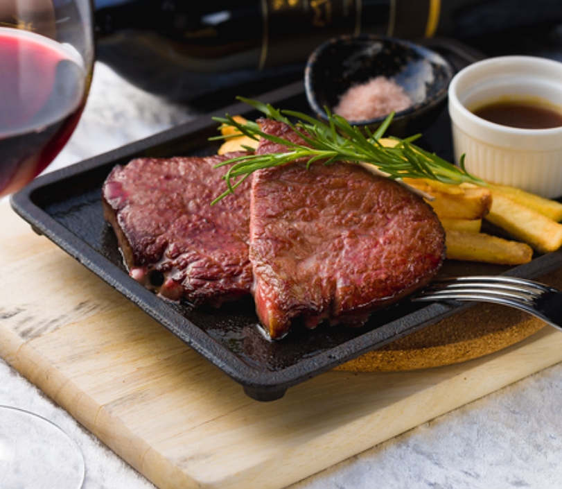 和牛やサーロインより脂身が限りなく少なく、赤身肉の美味しさを堪能できるのがオーストラリア産フィレの特徴。その中でも穀物を餌にしている最高級グレインフェッドを使用しているのでレアで肉々しさを味わえる一品。100g:2800円 200g:3800