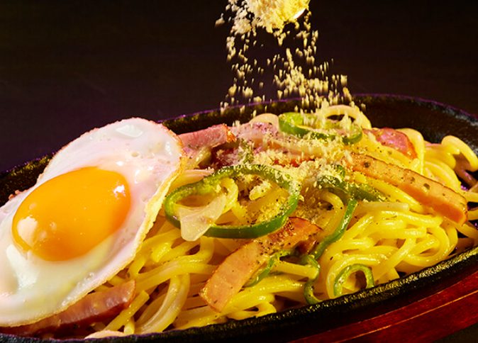 ガーリック香る白ナポリタンや、極厚ハムカツ、懐かしいクラシックプリンなど、見た目も味も楽しいフード&ドリンクが揃っています。