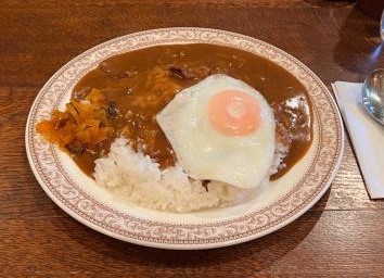 特選カレーライスはチーズと目玉焼きがトッピングされ、ビーフの薄切り肉が具材として使われる。ベーシックな美味しさと特製ではなく特選というポイントが魅力。チーズがカレーと溶け合い、絶妙な味わいを楽しめる。