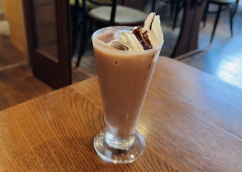 アイスココアは暑い夏の日に最適。甘くて優しい味わいで、チョコレートがけの生クリームも嬉しい一品。暑さや疲労を癒す癒しのドリンク。
