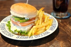 当店のハンバーガーは、ボリューム満点でありながらコスパが良く、満足感抜群。小ぶりなサイズ感で、女性にもぴったりです。さらに、セットにはポテトがついて、ランチやディナーに最適な一品です。