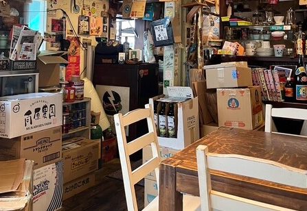 当店は、ポップで賑やかな店内が特徴です。壁には様々な漫画や雑貨が並び、リラックスした雰囲気で食事を楽しめます。まるで友達の家に遊びに来たような、楽しい時間をお過ごしいただけます。