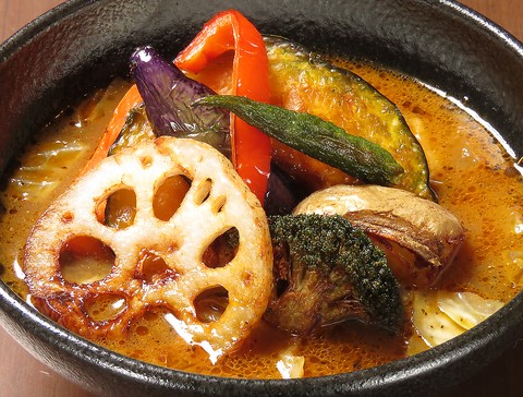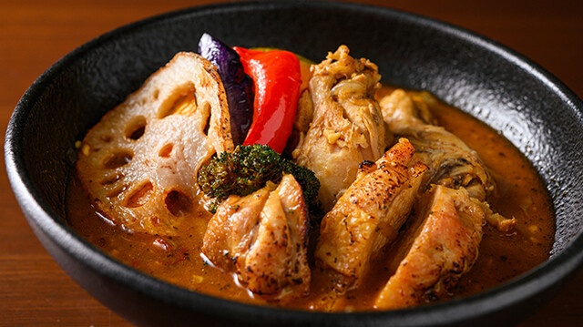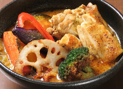 野菜だけじゃなくお肉も食べたいという方にオススメ!スープが見えなくなるほどのチキンに満足度100%!ライス大盛りや五穀米への変更もできます♪スープカレーはお酒の〆にも最適です。