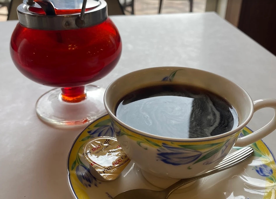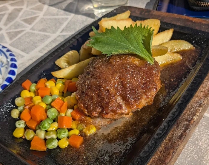 人気のハンバーグライスセットは、昔から変わらない味わいのグレービーソースが魅力。落ち着いた店内で窓からの景色を眺めながら、昼はカフェ、夜はバー感覚で楽しめます。カラオケルームもあり、幅広いシーンで利用できる一軒です。