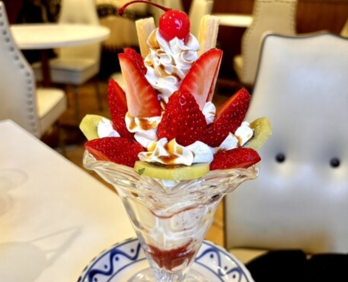 コーヒーやデザートだけでなく、ビールなどのアルコールメニューも豊富に揃うのが魅力。写真を撮りたくなる可愛らしいいちごパフェなど、どこか懐かしい喫茶店メニューも充実。散策後の食事やカフェタイムにぴったりのお店です。