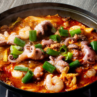 女性を中心に人気急上昇中の『ナッコプセ』韓国・釜山の郷土料理でナッチ(タコ)、コプチャン(ホルモン)、セウ(海老)を組み合わせた旨辛チゲです。中には平打ちの春雨やトッポギも入っています。〆のポックンパにチーズをトッピングすればお腹も心もいっぱいになること間違いなし◎