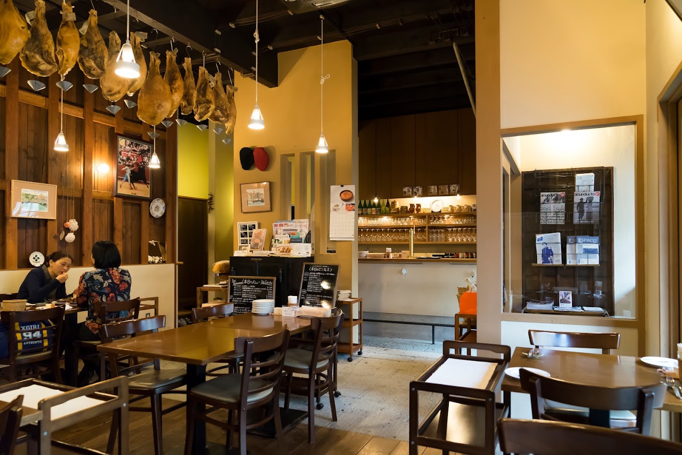 天井から吊るされた生ハムや立ち飲みカウンターなど、本場スペインのバルの雰囲気を再現。ワイン片手にピンチョスをつまむも良し、ゆったりコース料理を楽しむも良し、さまざまなスタイルで楽しめます。