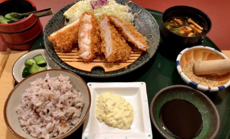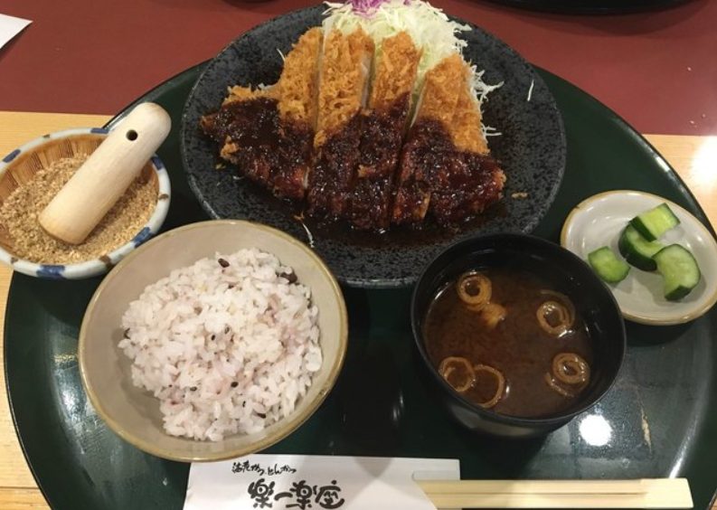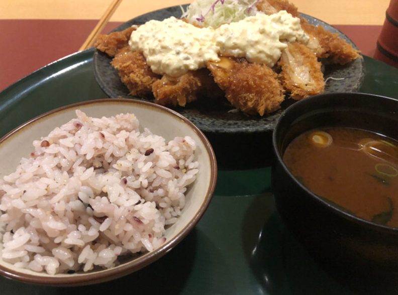 衣はサクサク、中はふんわりと柔らかいロースかつが主役。すり鉢の胡麻を自分ですって香ばしいソースと合わせれば、より豊かな味わいに。ご飯、味噌汁、キャベツ、漬物はすべておかわり無料で、心もお腹も満たされる満足の定食です。