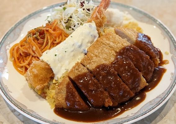 当店自慢のトルコライスは、ボリューム満点で種類も豊富。特に「ラテントルコライス」は、エビフライやロースかつ、ピラフ、パスタが一度に楽しめる大人のお子様ランチとして大人気!定番からシーフードまで、どれも絶品です。