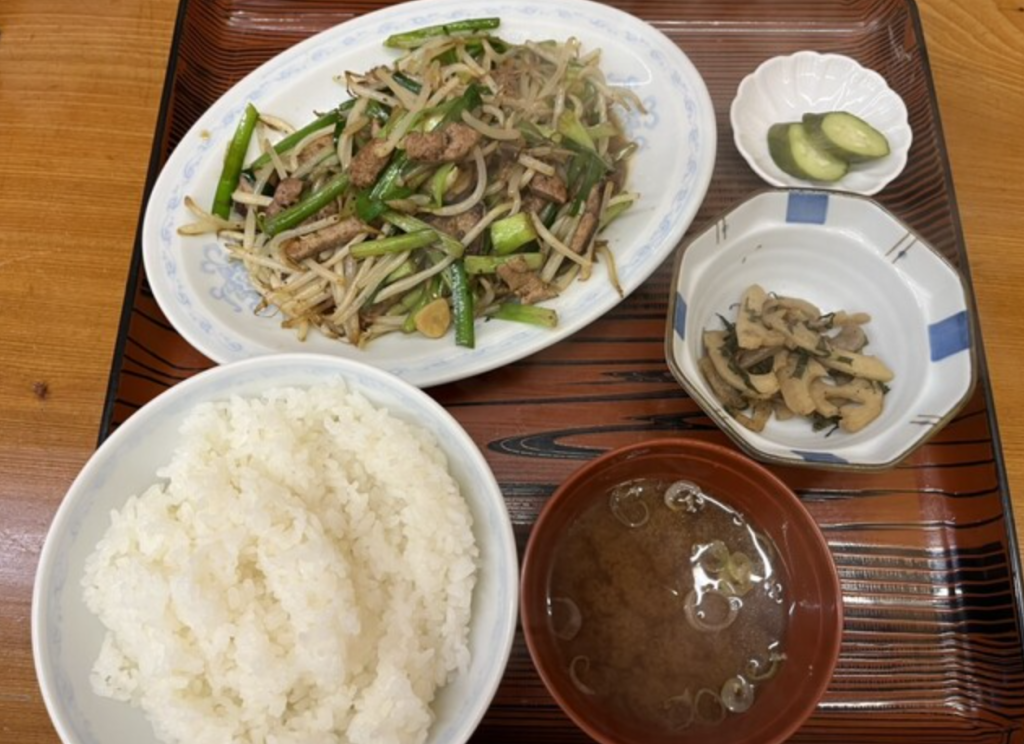 レバニラ炒め定食は絶品!レバーが小さくカットされていて食べやすく、味付けは絶妙。濃すぎず、ちょうど良い塩加減でご飯が進む。お腹いっぱいになること間違いなしです。
