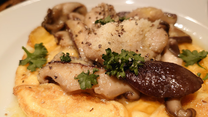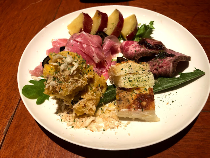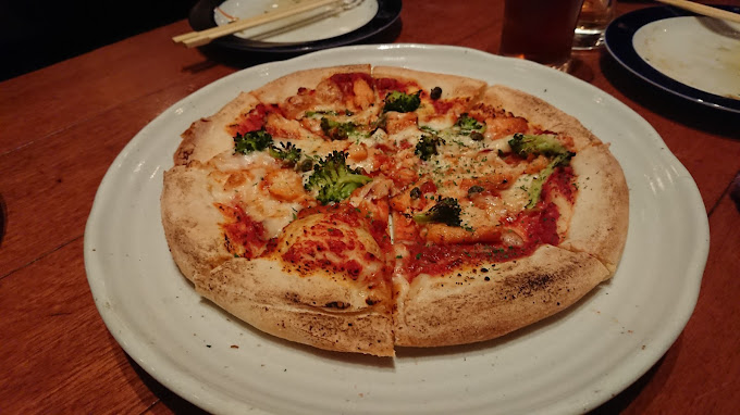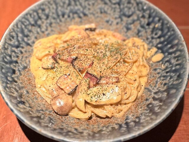 熟成ベーコンやポルチーニ茸を使用したパスタ、クリスピーな窯焼きピッツァなど、多彩なメニューが魅力。テラス席からは公園の景色も楽しめ、家族や宴会にも最適な広々とした店内です。