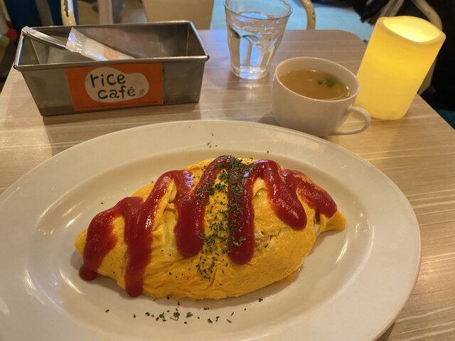 ナポリタンやグリーンカレーまで、ヨーロッパからアジアまでの幅広いメニューが揃う「ライスカフェ」。ドリンクも充実し、様々な味を楽しめます。