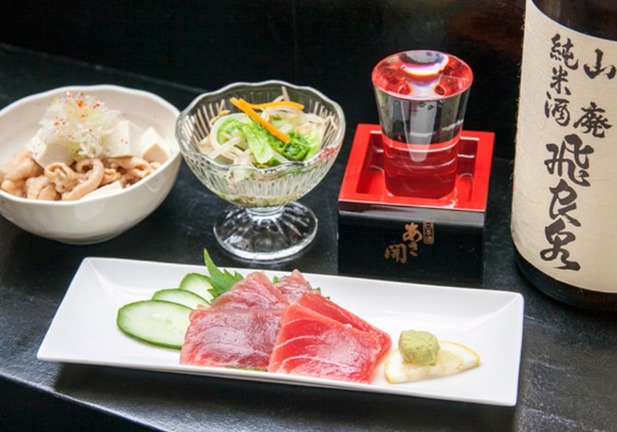 その日に仕入れたマグロやヒラメ、鯛などを使った刺身盛りはボリューム満点。三陸産ホタテやサザエの炭火焼きも楽しめ、岩手の地酒とともに旬の味覚を堪能できるのが魅力です。