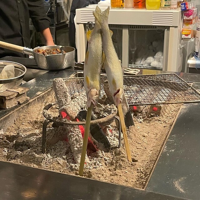 カウンター越しに囲炉裏で焼かれる料理を眺めながら楽しめる炉端焼きの名店。店主が厳選した新鮮な食材を丁寧に焼き上げ、絶品の味わいを提供します。お刺身や珍しい食材も楽しめる、大人の隠れ家です。
