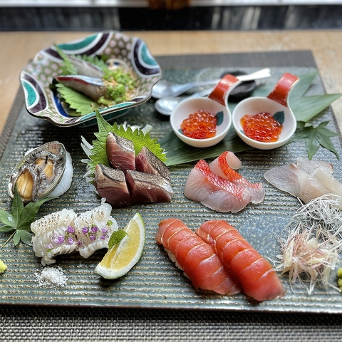 メニュー構成は和食・炉端の「定番」と「独創性」を混在ささせることで、お客様が肩肘を張らずに安心して、居心地の良い『食「とき)』を愉しめる空間を目指しています。伝統的な和食を研ぎ澄まされた感性で紡ぎ直し、新たのものへと押し上げ、旨さのなかに他では味わえない驚きと感動を追求しています。また、素材同士の渾然一体とした旨味を凝縮させ、嚙みしめるごとに美味さが段階的・重層的に舌へと響く一皿を目指しています。