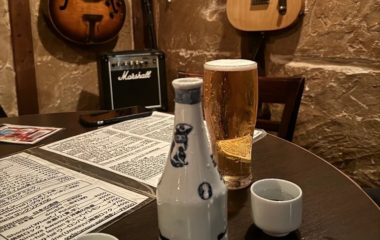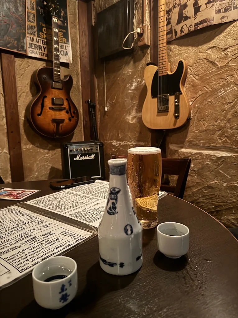 丁寧に注がれる生ビールは、泡が少なめで最後までしっかり味わえる一杯。グラスいっぱいに注がれたビールを片手に、ロックサウンドに身を委ねる時間は格別。音楽とお酒、そのどちらも主役になる空間で、仕事終わりの疲れを心地よくリセットできる。