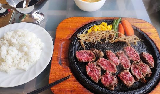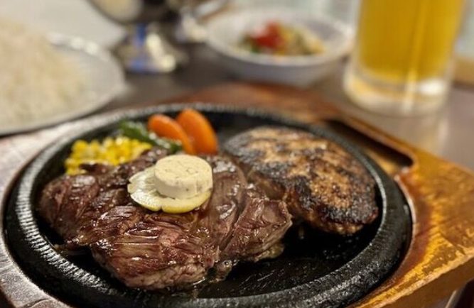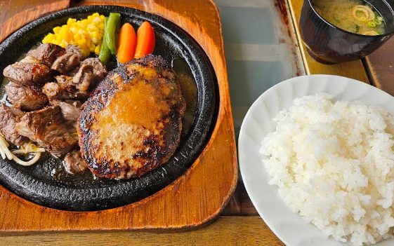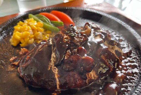 目の前に広がる絶景と、ビーフ100%のふわふわジューシーな手作りハンバーグ。熱々の鉄板で提供されるランチは、味もボリュームも大満足。思わずまた来たくなるおいしさです!