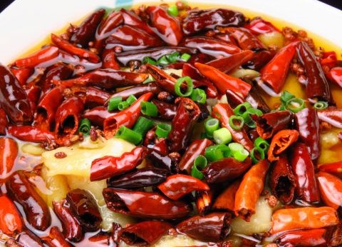 白身魚を唐辛子で煮込んだ、四川料理。大量の唐辛子で煮込むので、中のお魚に旨味と辛味がしっかり染み込んでおります♪夏の暑さも吹き飛ぶ、スタミナ満点のメニューです