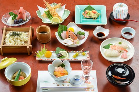 旬の食材を丁寧に仕込み、一品ずつ手作りでご提供する懐石料理は、季節の移ろいを感じられる贅沢な内容。小鉢からお吸い物、〆のざるうどんまで心を込めておもてなしします。四季を感じる上質なひとときをぜひご堪能ください。