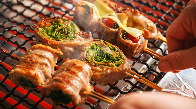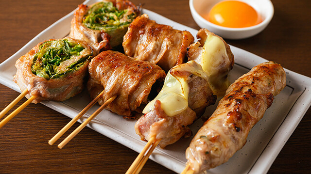 愛媛のブランド豚『甘とろ豚』を使った料理をぜひお召し上がりください。低温調理したレア刺しは盛り合わせがおすすめ。とろけるようなレバーや、プリプリのハツ、クセになる歯ごたえのタンをご用意しています。また焼きとんは、肉汁や甘みとなめらかな口どけが美味しい一品です!