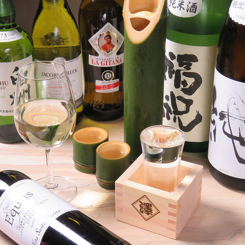千葉の地酒2~3種を中心に、全国各地から店主自ら厳選したおすすめの日本酒2~3種をご用意◎ また和酒だけにこだわらず、シェリー酒やワインなどの洋酒も取り揃え、それぞれのお料理に合わせてお飲みいただいております。 日本酒は店主こだわりの竹の徳利とお猪口でご提供。