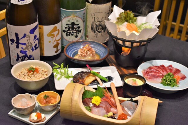 お料理に合う日本酒は、20種類以上をスタッフが厳選!和歌山の「紀土」や新潟の「鶴齢純米吟醸」、宮城の「日高見超辛口純米」など、時期や季節によって仕入れを変えております。また、店長こだわりの30種類以上のお猪口をご用意しており、日本酒の旨味を引き立てます。自慢の鮮魚や逸品料理とぜひご一緒にお楽しみください!