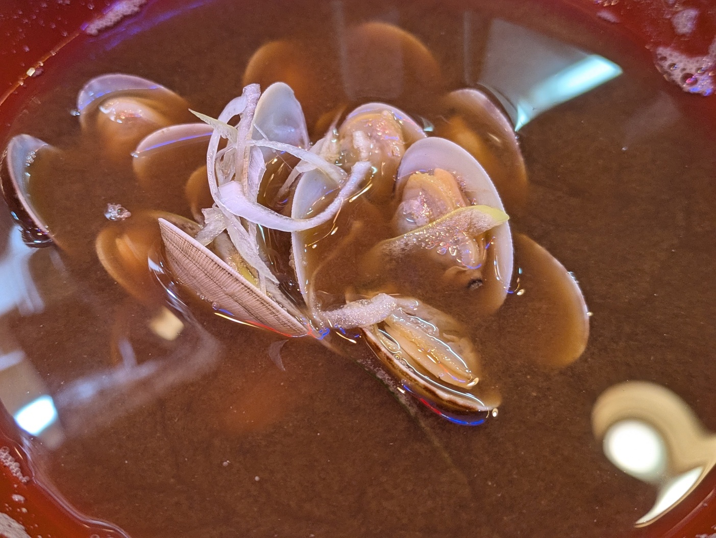 魚まるでは、ランチタイムには新鮮な海の幸が詰まった海鮮定食を提供。お味噌汁が付いており、+300円でアサリ入りに変更可能。ジャラジャラとたっぷりのアサリが魅力です。