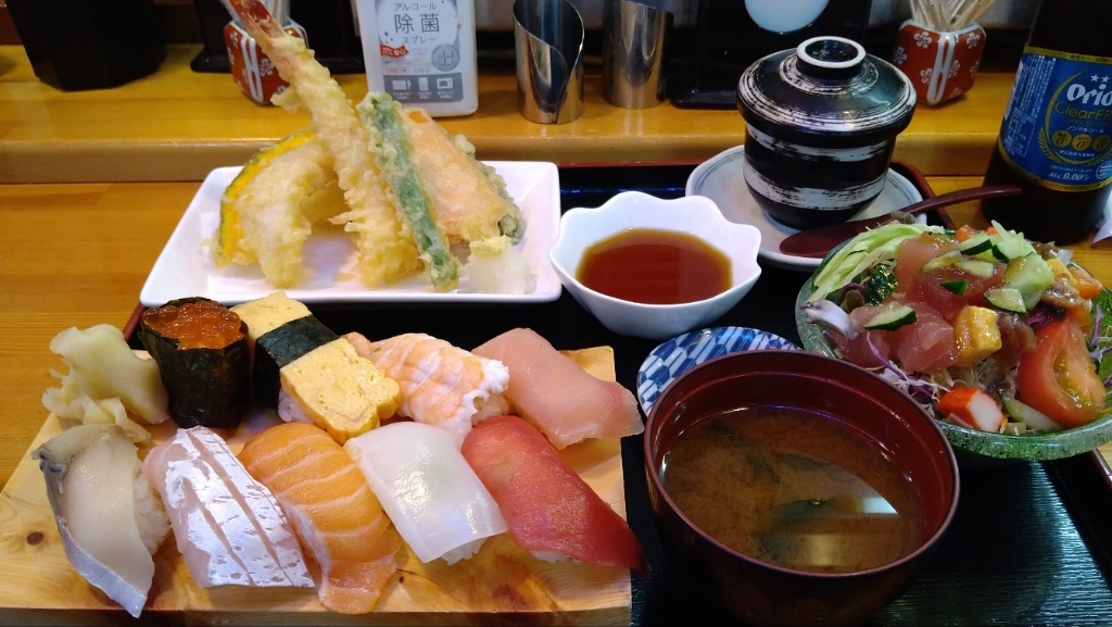 寿司定食の豪華組み合わせ