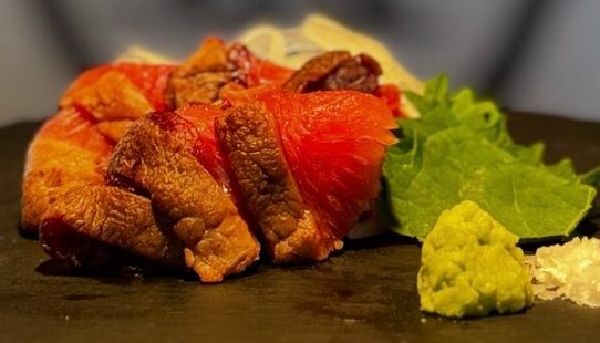 新鮮な魚介を使った寿司はもちろん、サクッと軽い衣で仕上げる天ぷらも人気の一品。和牛もも天や大げそ一本天など、こだわりの食材を使った天ぷらはお酒との相性も抜群です。さらに名物の刺し盛りや希少部位の鮪ほほ肉など、一品料理も充実。寿司と天ぷら、酒肴をゆっくり楽しめる贅沢な和食の時間を過ごすことができます。