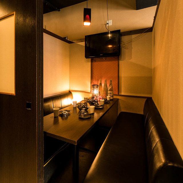 店内のお席は全て扉付き個室でご用意しております。温かみのあるダウンライトに包まれた空間は、お仲間だけでゆったり落ち着けるので、各種宴会だけでなく気軽な飲み会にも最適◎