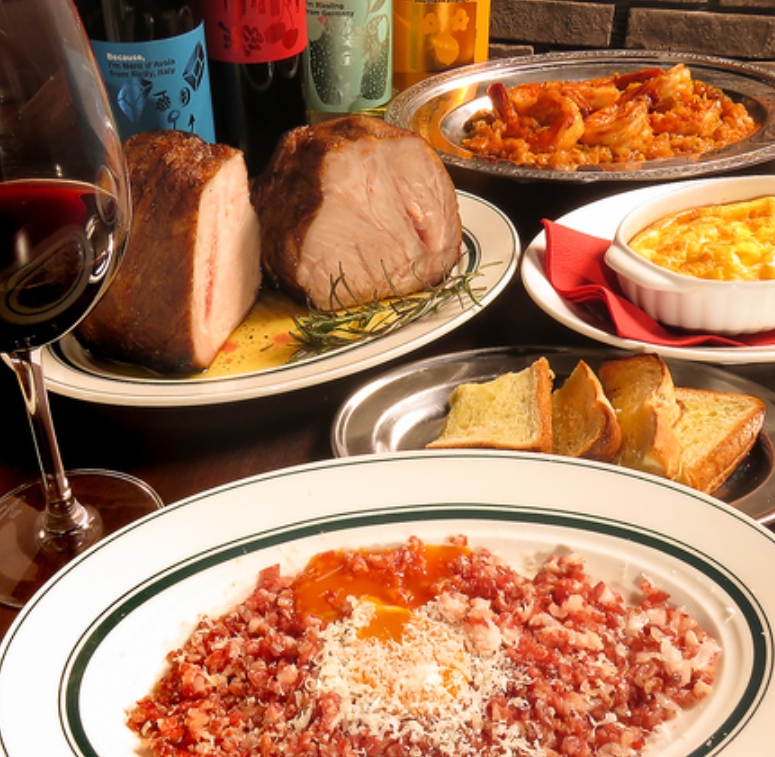 都内で人気沸騰中のポークステーキが千葉にも上陸◎巨大な見た目とは裏腹に、低温調理で火入れされた豚肉はしっとりジューシーで旨味が溢れ出てきます!!もちろん皆様でシェアOK!お写真を撮りながらワイワイ楽しめること間違いなしです♪※調理にお時間かかる場合がございます。事前のご予約がおススメです!