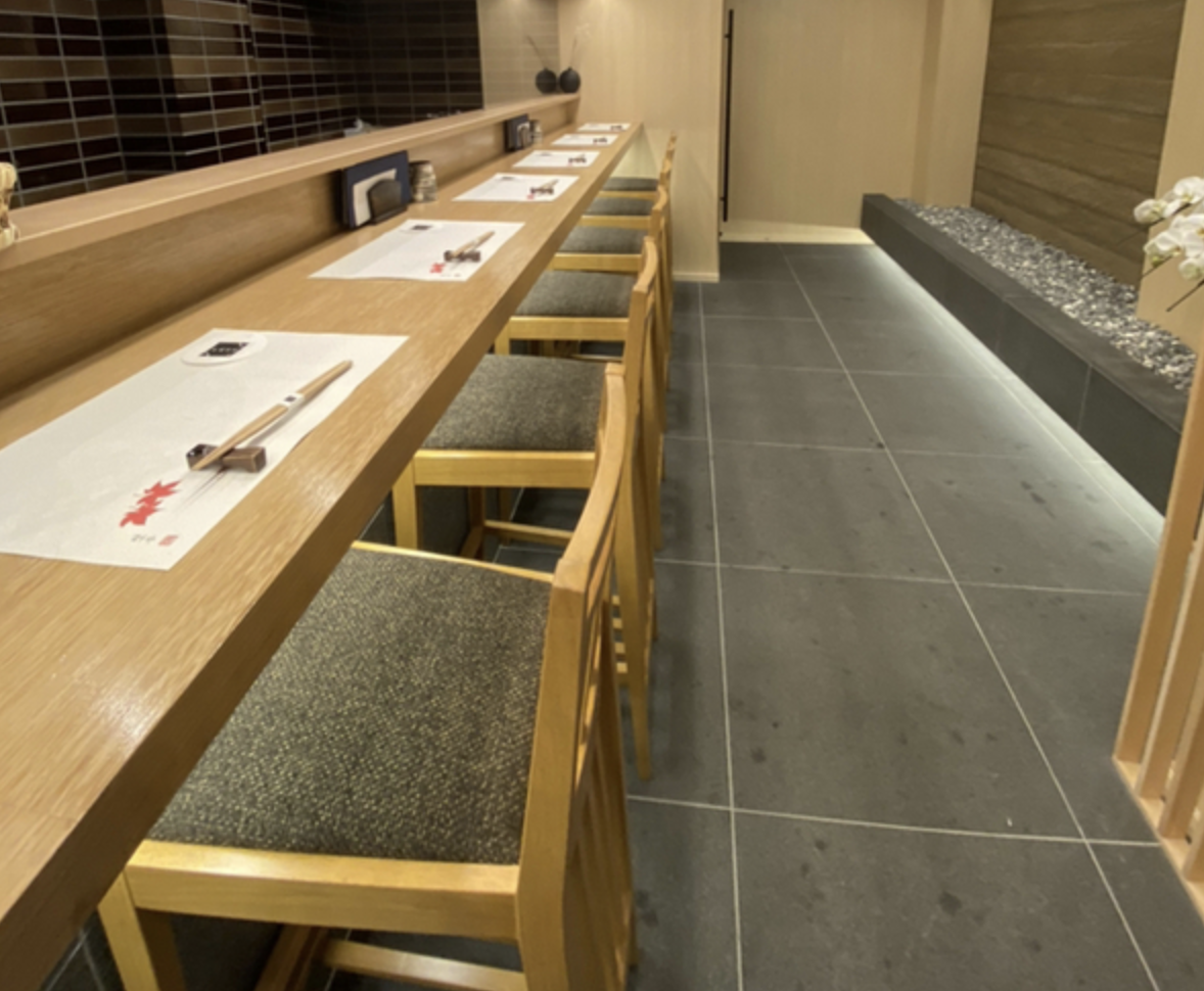 臨場感あふれるカウンター席と個室を完備!清潔感があり、落ち着いた大人の雰囲気の店内は、ご接待などのビジネスシーンや記念日などに最適です。とくに、調理風景を楽しめる臨場感あふれるカウンター席は、初めてご来店になられる方におすすめです。