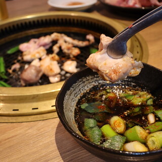 お客様ご自身で焼いていただく鶏焼肉スタイル