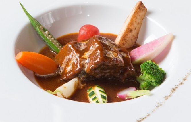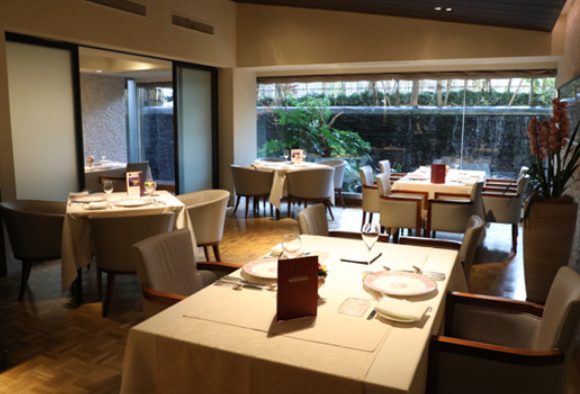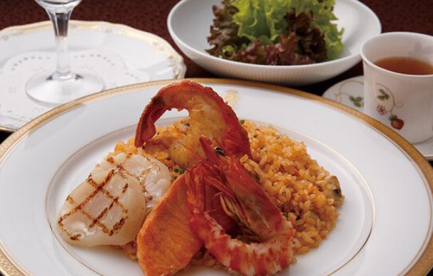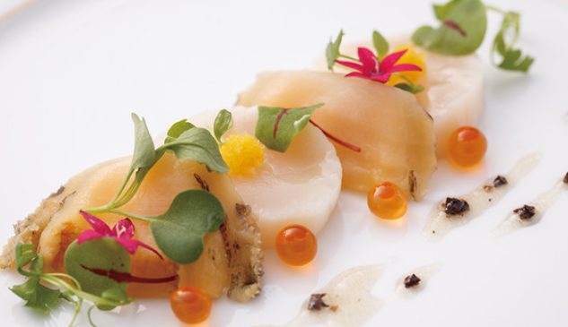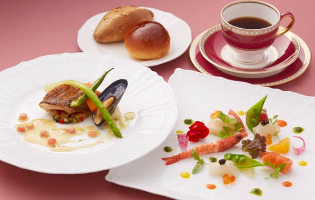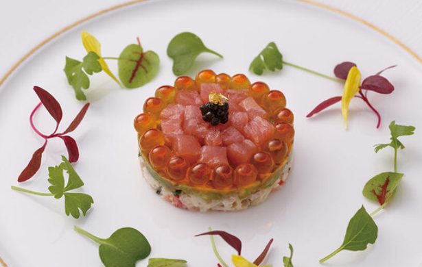 地元・福岡の旬の食材をふんだんに使用したコース料理をご用意。季節ごとに変わる味わいと、目にも美しい盛り付けが、特別なひとときを演出します。昼は光あふれる開放的な空間、夜は水音が響く大人の雰囲気でお迎えいたします。