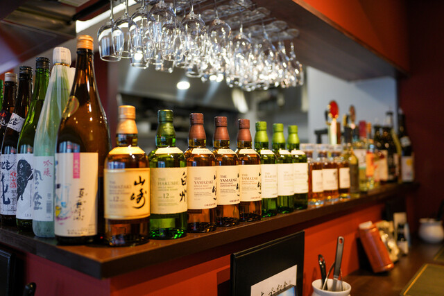 一歩足を踏み入れると広がるのは、随所に並んだ酒樽や瓶が目を惹く、カジュアルな雰囲気の和空間。お席はカウンターとテーブルを完備しております。