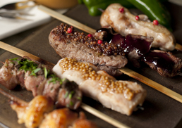 焼き鳥には京紅地鶏・銘柄鶏各種・鴨・ホロホロ鳥etc.幅広く使用!調理法・ソース・調味料を素材毎にアレンジしたものやシンプルなものを併せてご用意。ワインが飲みたくなる焼鳥に仕上げております。